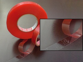 Doppelseitig klebendes, transparentes PET-Klebeband mit Acrylatkleber.